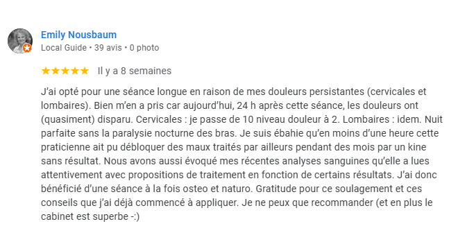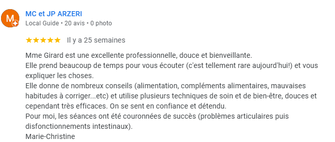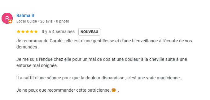 Voici les derniers avis laissés par les personnes qui m’ont consultées